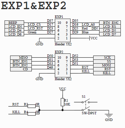 In order to be compatible with some motherboards, such as RAMPS1.4, mini12864 is equipped with RST (R3) and KILL (R4) optional resistors. At present, some motherboards (S6/Spider) change the KILL to 5V. At this time, please make sure that R4 is not on the mini12864 (please remove it if it is on the board), otherwise pressing the button on the screen will cause a short circuit between 5V and GND, and long-term operation will cause the motherboard to be damaged.